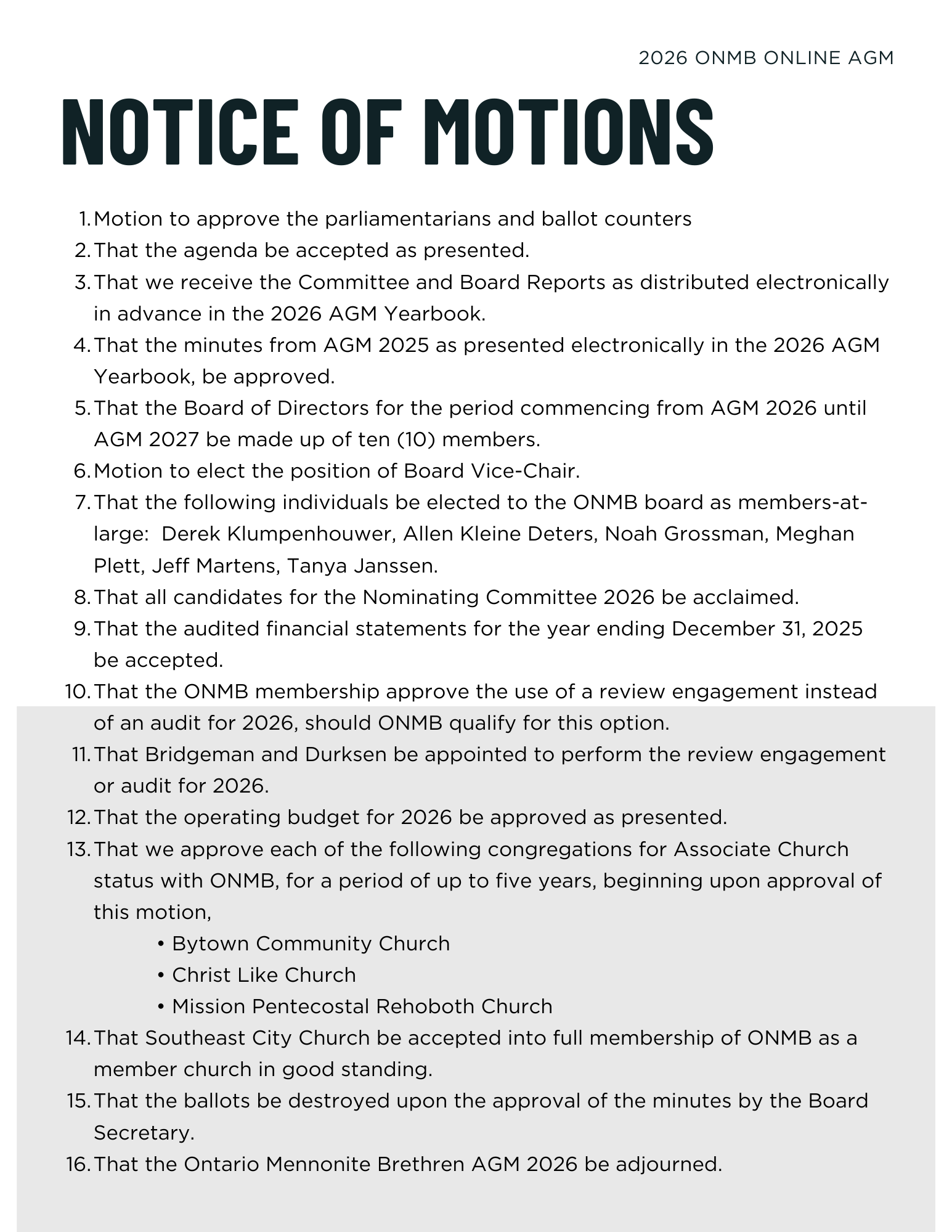 ONMB Board & Committee Reports