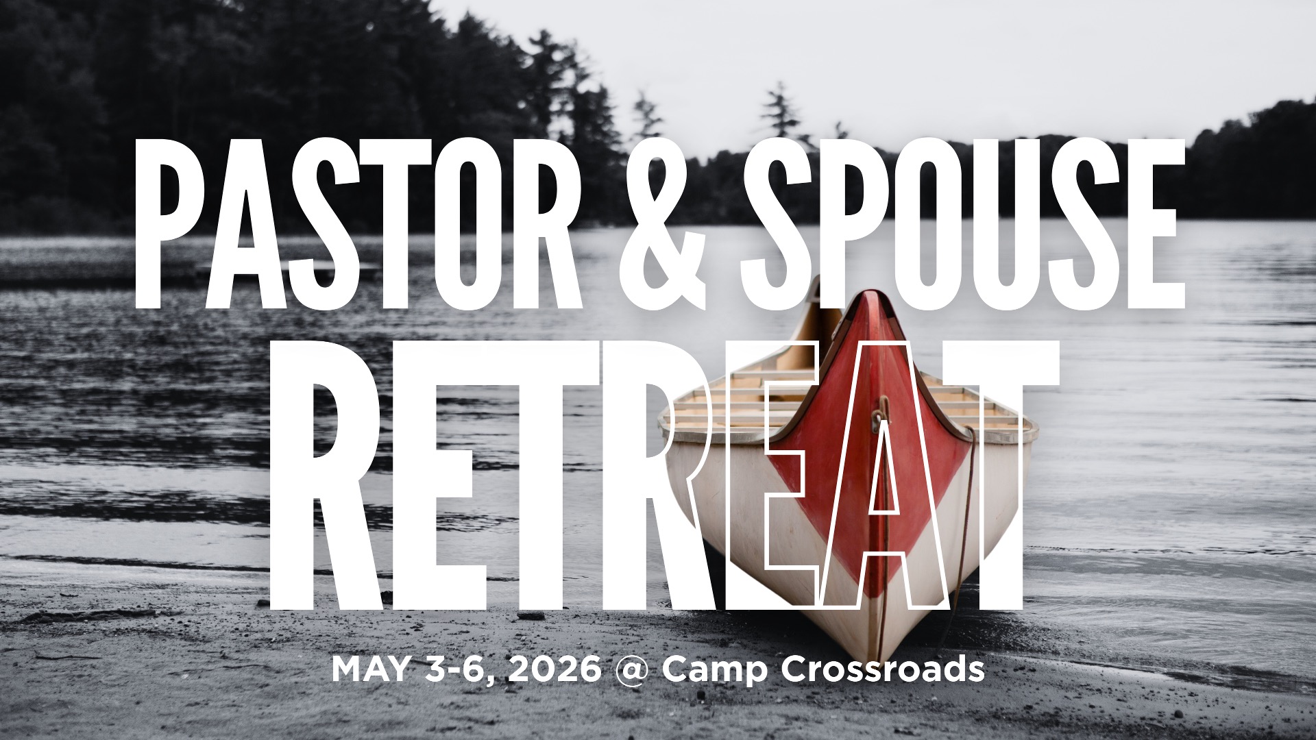 We are delighted to invite you to our upcoming Pastor & Spouse Retreat, taking place May 3–6, 2026 at Camp Crossroads. Our desire is for this retreat will provide rest, encouragement, and renewal for those faithfully serving in ministry.